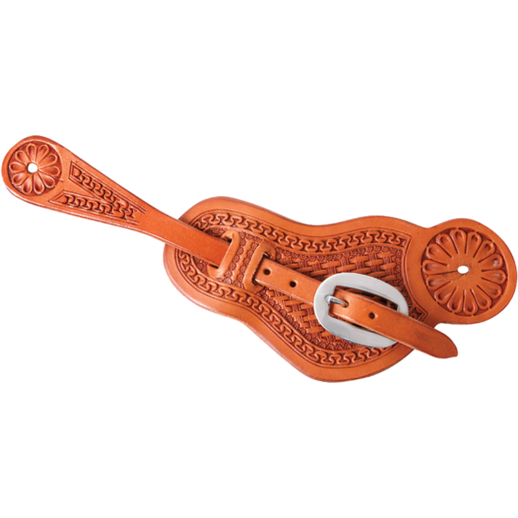 حزام Buckaroo spur مع ختم سلة ، وإطار San Carlos وإبزيم من الفولاذ المقاوم للصدأ. التفاف الجلد الطبيعي