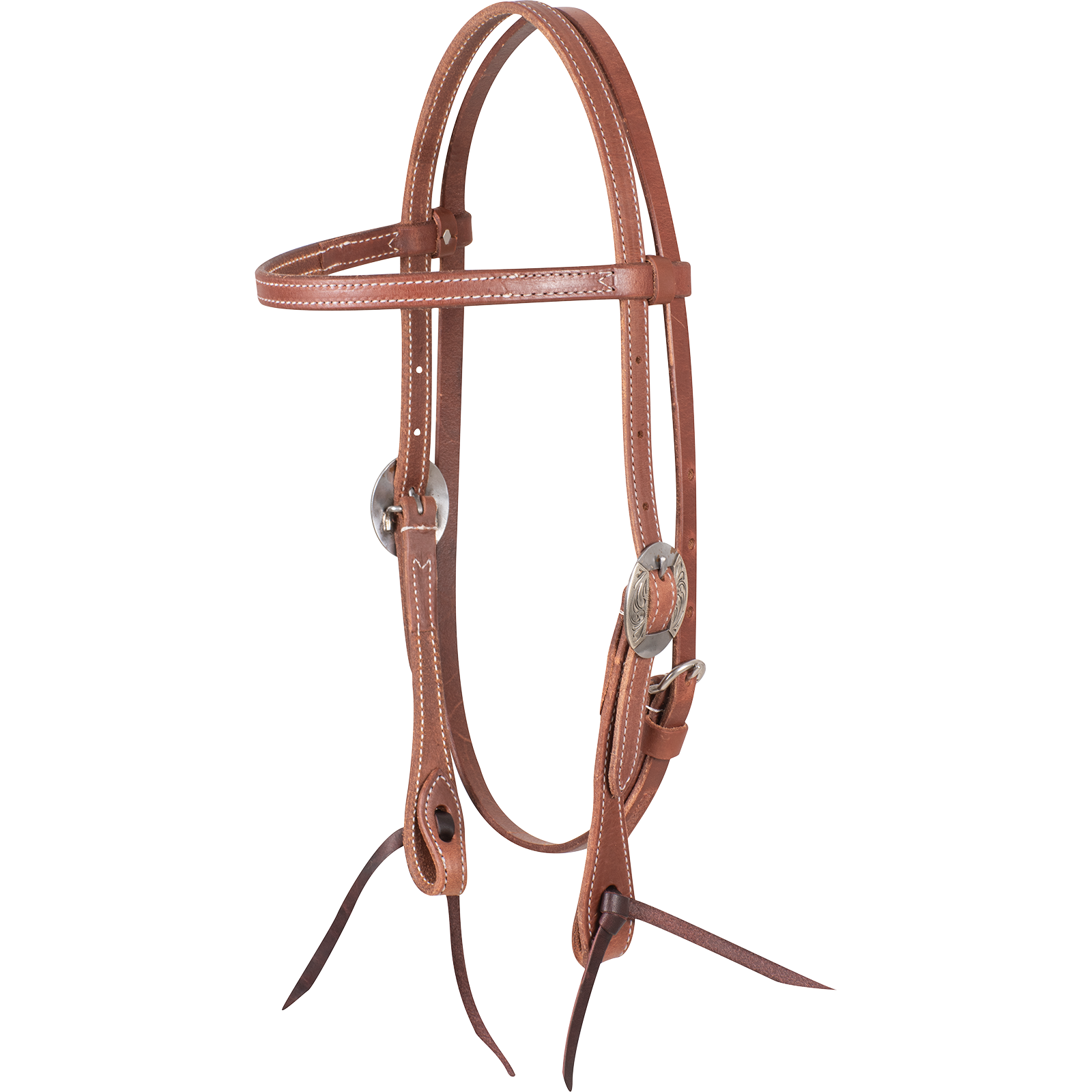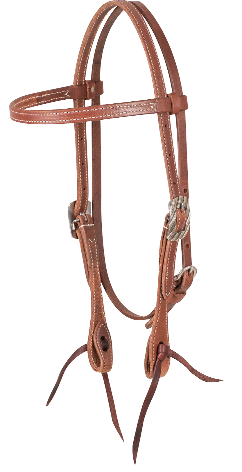Dieser hochwertige Browband-Kopfstall verfügt über Chocolate Roughout-Leder mit einzigartiger Schnalle und Bit-Krawatten.