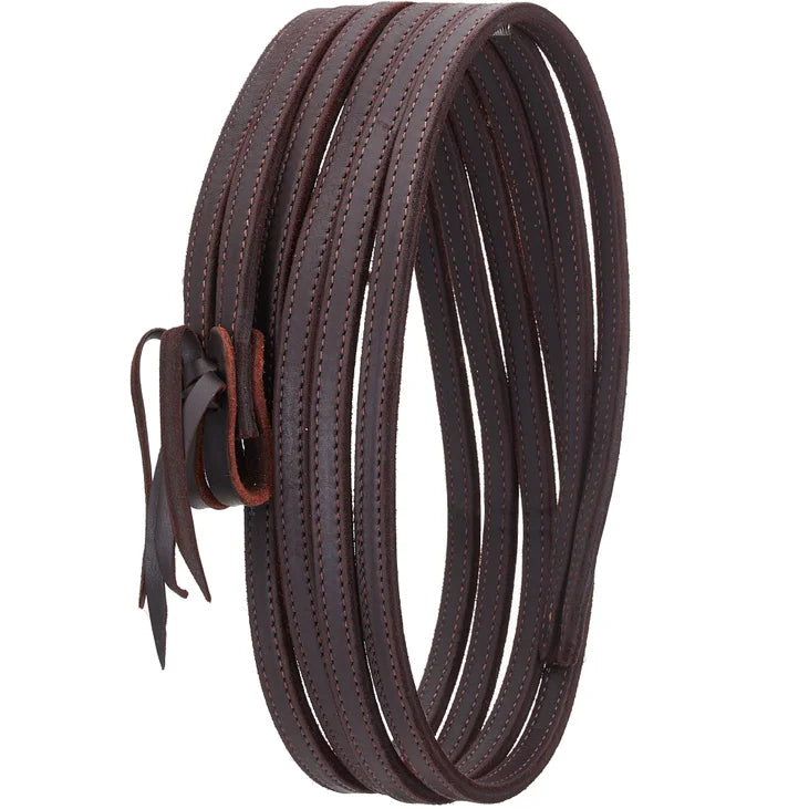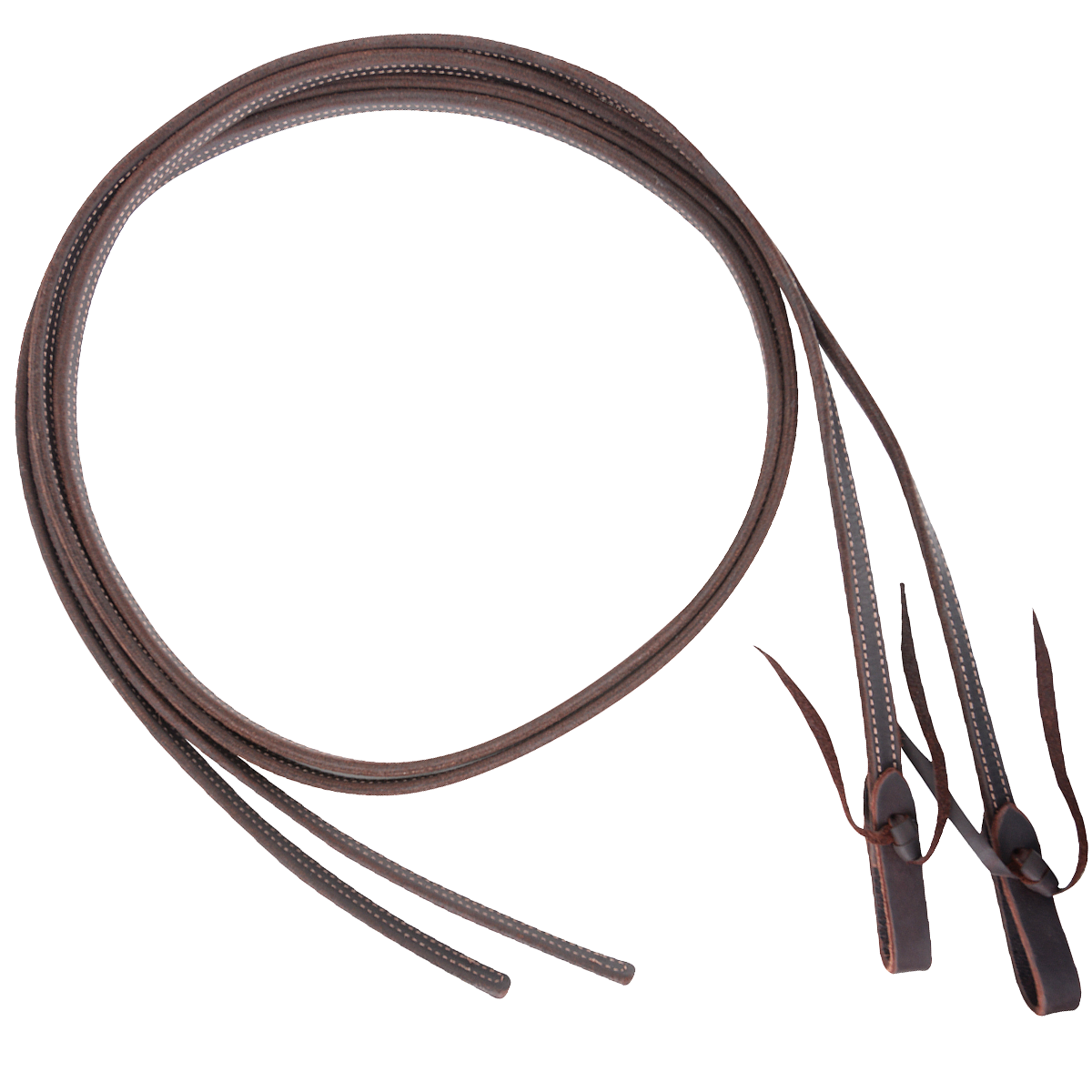 Fabricada con cuero Latigo de primera calidad, esta rienda dividida liviana de 5/8 "está diseñada para brindar durabilidad y comodidad. Cada rienda está doblada y cosida para mayor resistencia y ha sido sometida a un tratamiento especial para lograr una sensación de suavidad y comodidad desde el principio. Con 94 pulgadas de largo, estas riendas ofrecen una experiencia de manejo confiable y suave.