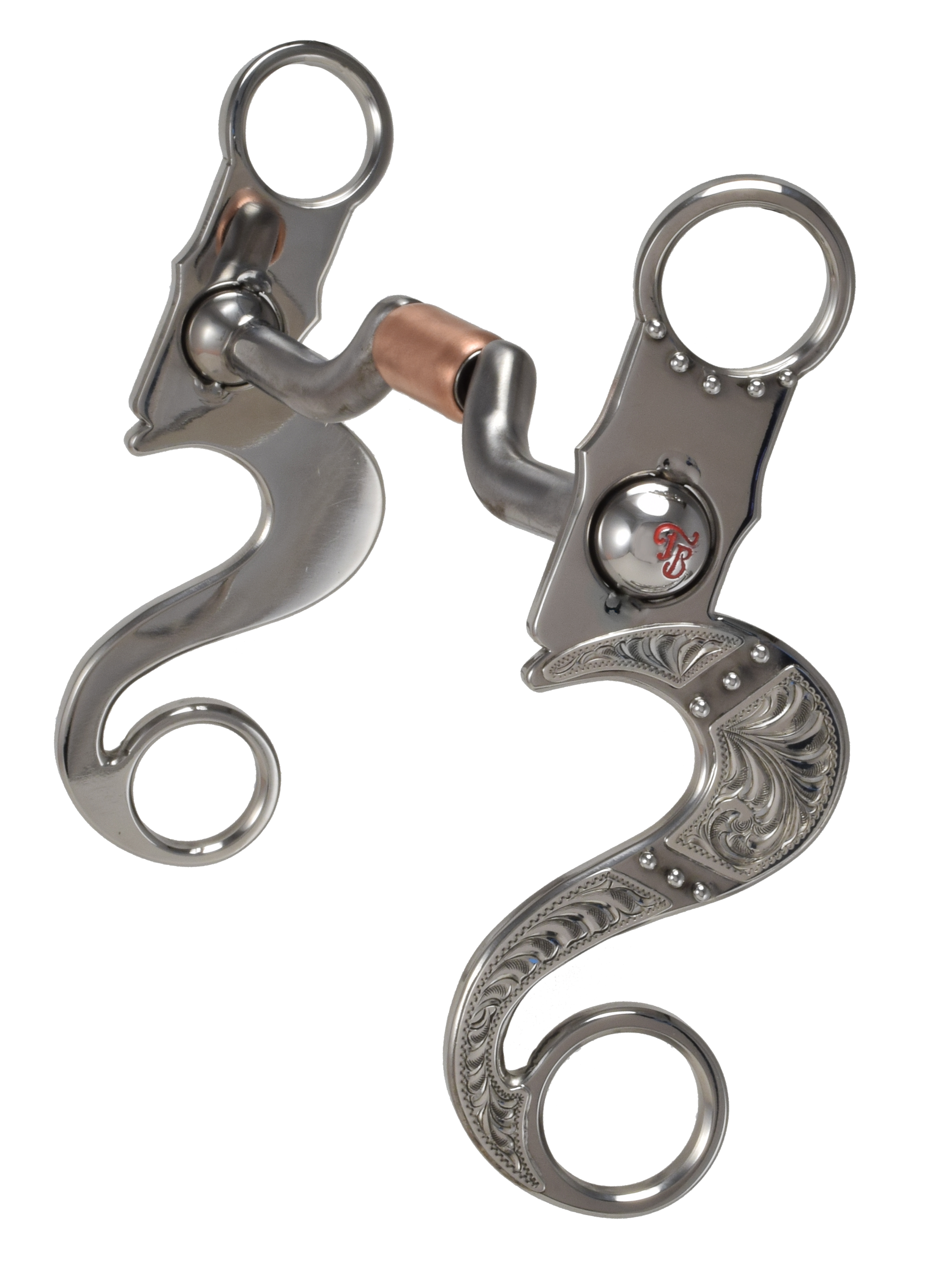 Esta boquilla, de hermosa elaboración, cuenta con un cuerpo Cody© de acero inoxidable con un revestimiento floral de plata y puntos. La boquilla es nuestra Tall Billy Allen©, hecha de hierro dulce y rodillo de cobre. El cuerpo mide 6 1/4".