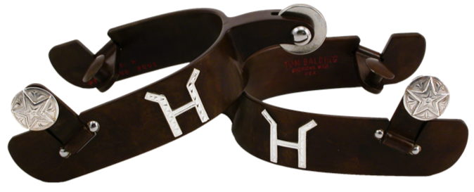 Este par de espuelas bellamente elaborados presenta una banda de talón de 1", Polo Shank© y Polo Rowel© de acero inoxidable en acabado marrón. Cuentan con una marca, de su elección.
