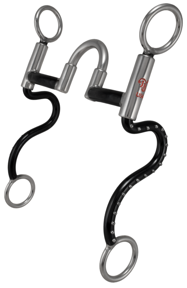 Ce mors magnifiquement conçu présente un format moyen STige © en finition noire avec points en acier inoxydable. Le bec est notre Correction© avec incrustations en cuivre. Cette tige mesure 7 3/4".