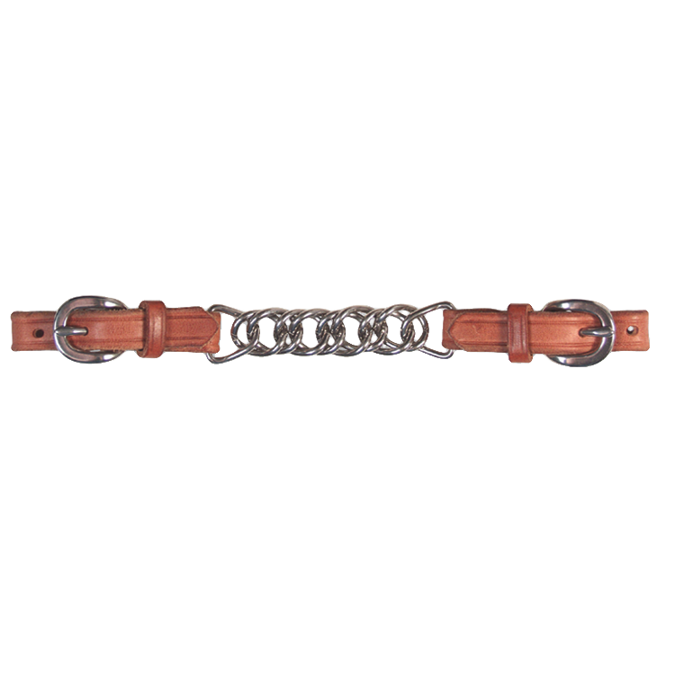 Sangle de gourmette équine # 6 en cuir avec chaîne et boucles en acier inoxydable portées par Tom Balding Horse Tack