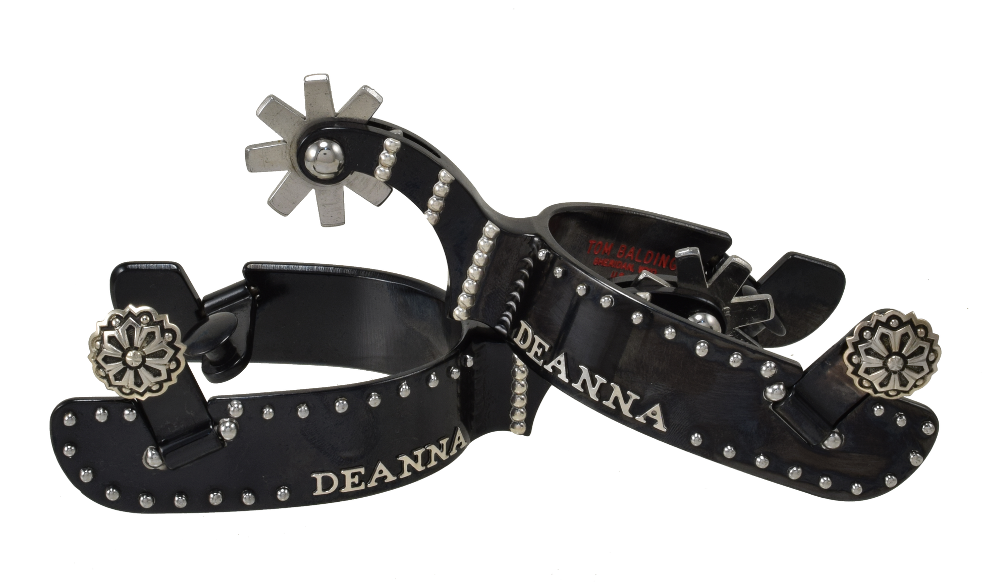 Éperon équestre # 65 points avec finition noire 2 initiales par Tom Balding Horse Tack $540.00