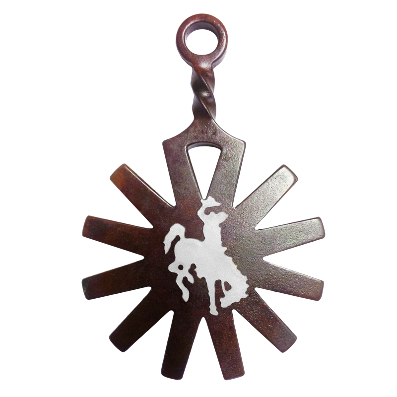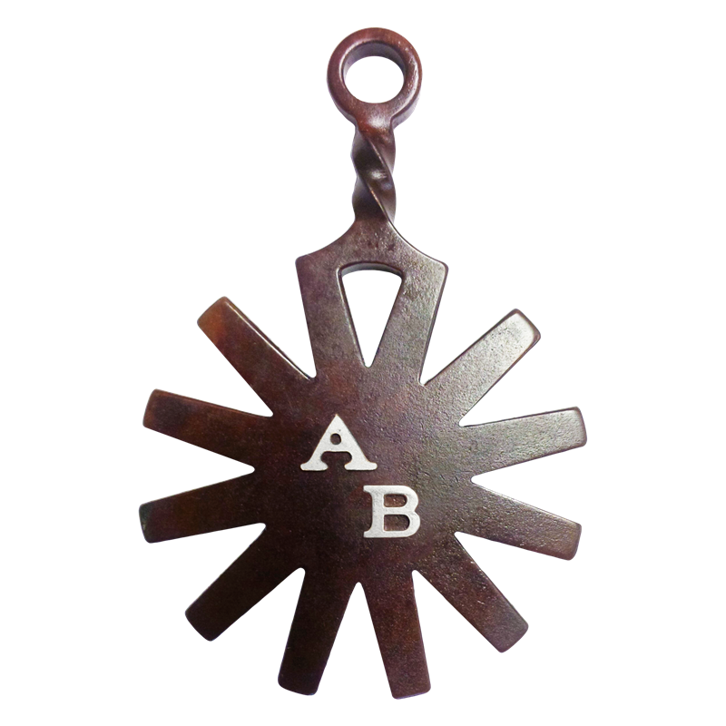 Ogni portachiavi a rotella si ispira alla nostra classica rotella a sperone e viene realizzato con la stessa cura per i dettagli e la stessa artigianalità. Aggiungi un tocco di stile al tuo portachiavi con questo portachiavi a rotella firmato Tom Balding. La finitura marrone di alta qualità è progettata per mettere in risalto le sovrapposizioni personalizzate. Le sovrapposizioni facoltative sono due iniziali, la figura di un cavallo al galoppo o un marchio/figura/logo. Le misure del portachiavi sono 1 5/8 x 2 3/8".