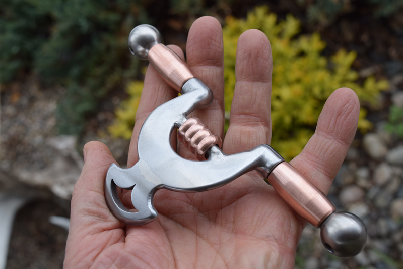 Questo morso splendidamente realizzato presenta una finitura marrone e acciaio inossidabile con puntini e il gambo Switchback©. Il bocchino è il nostro famoso Ace of Spades© con rullo in rame. Il gambo misura 8 1/4".