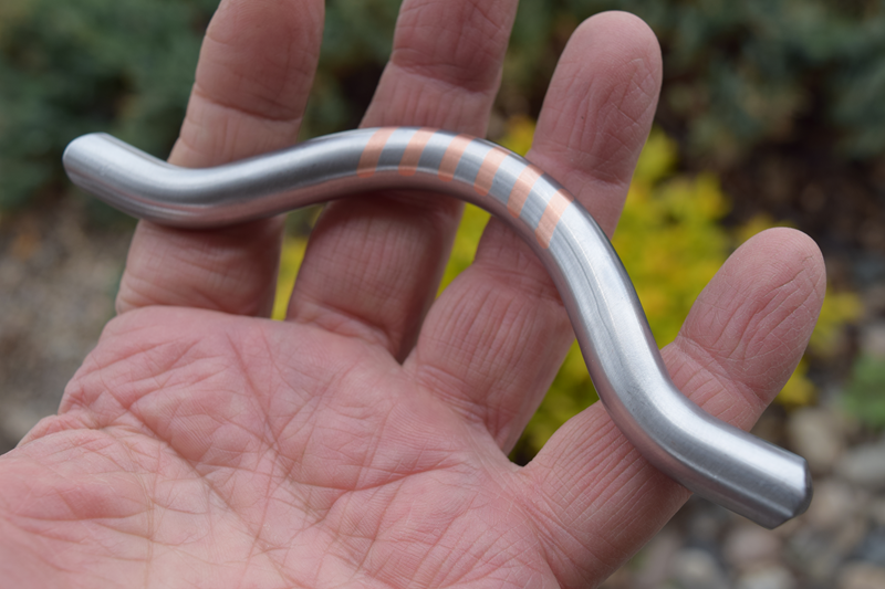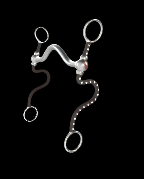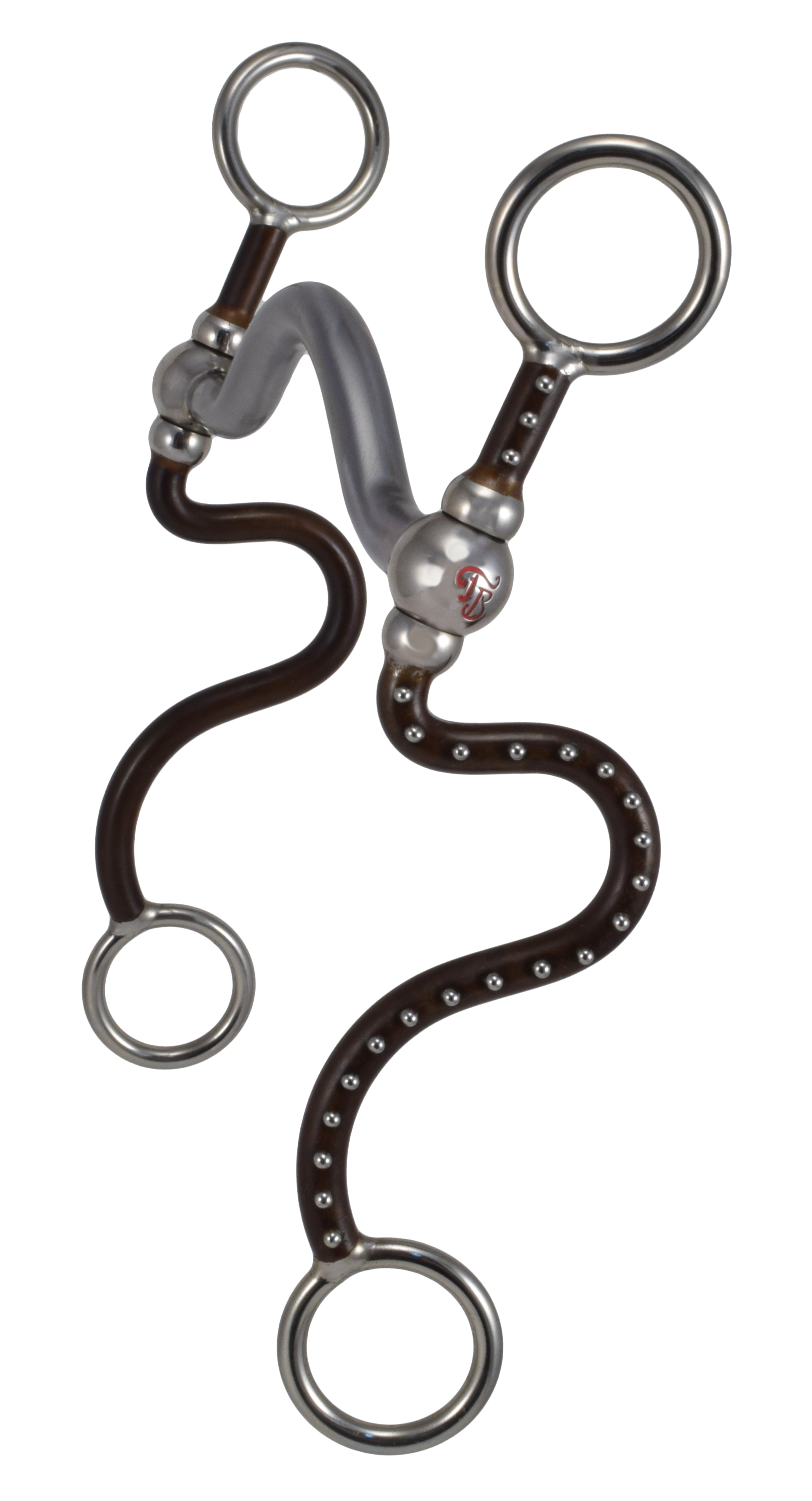 This beautifully crafted bit features a Medium S Ballhinge© shank in the antique brown finish with stainless dots. The mouthpiece is our Sweetwater© with a copper inlay. This shank measures 7-3/4".