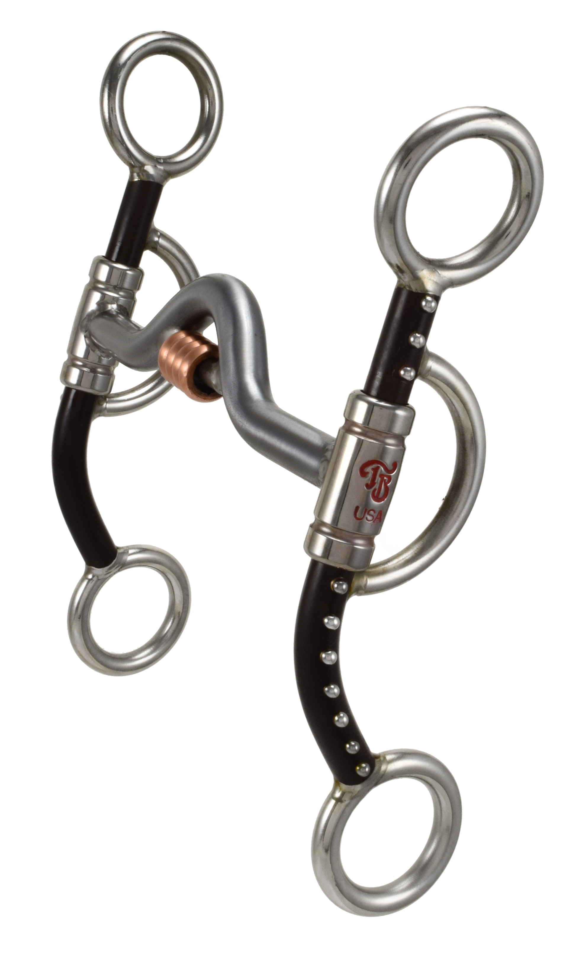 This Advantage Bits features a heavier 3/8” tube shank in a Brown with Dots finish. A quicker action and release with the added weight. The mouthpiece is our Medium Low Port© with inset copper roller. This shank measures 7".