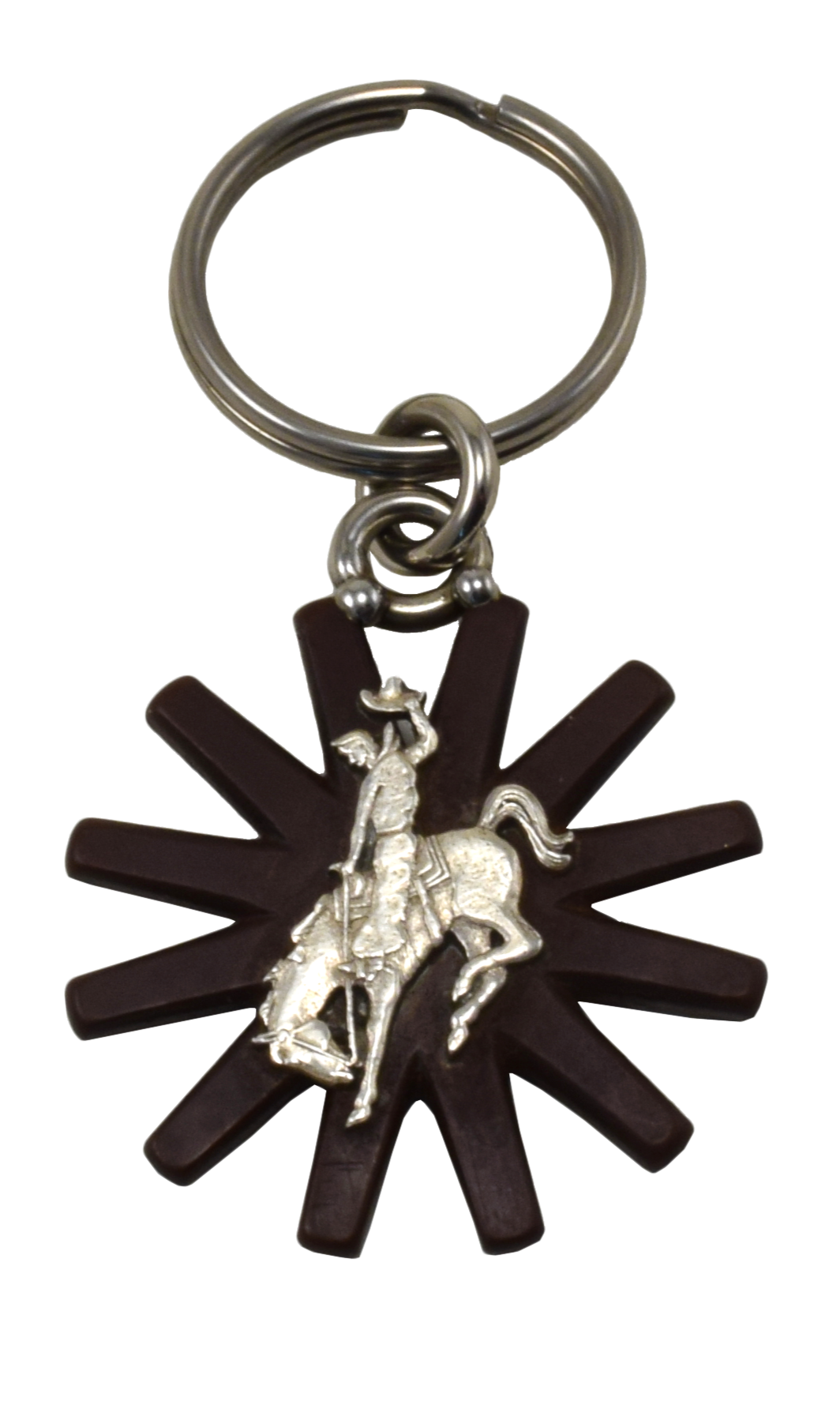 Brown Spur Rowel Key Ring With Bucking Horse - Sterling Silver