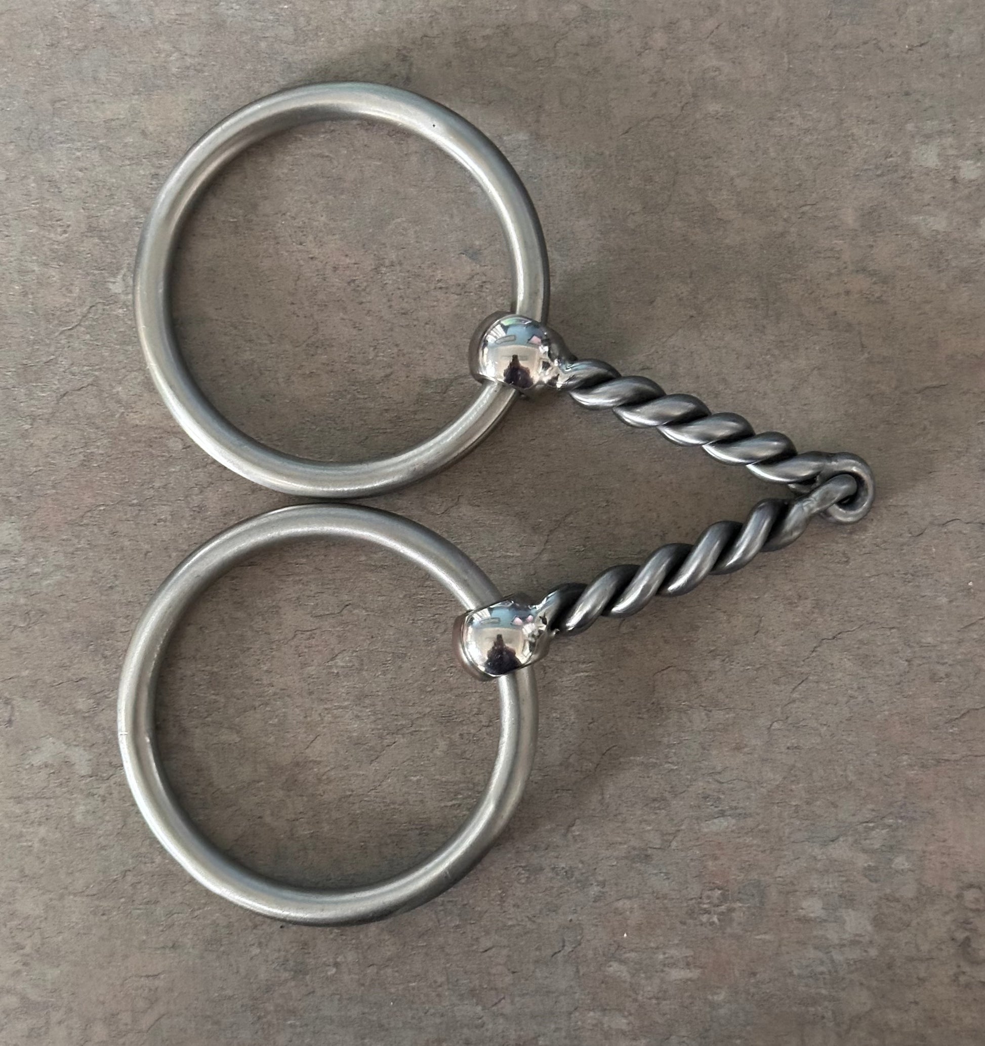 This beautifully crafted snaffle bit features a satin Loose Ring©. The mouthpiece is our Tom Balding Large 7/16" Twisted Wire©. The mouthpiece is 5 1/8" and the ring diameter is 5/16". Our Baseline Bits feature a satin finish and do not have copper inlays.