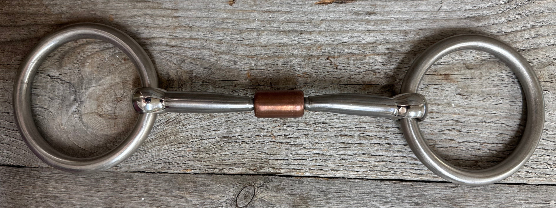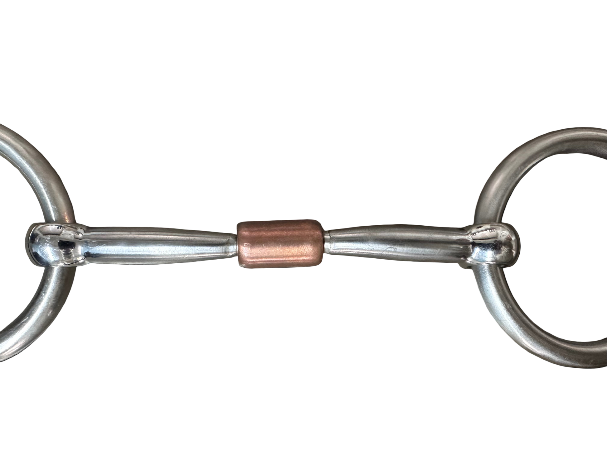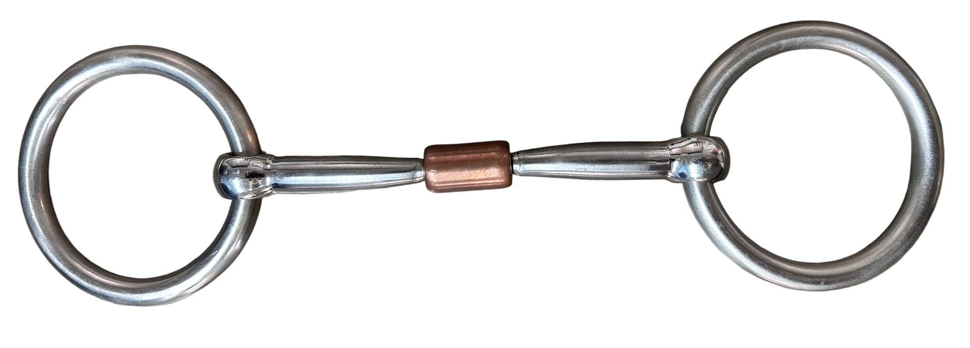 This beautifully handcrafted snaffle bit features our heavier West Coast Loose Ring© design with a smooth satin finish. It’s paired with the Tom Balding Billy Allen© mouthpiece, which includes a copper roller to encourage a soft, responsive feel.