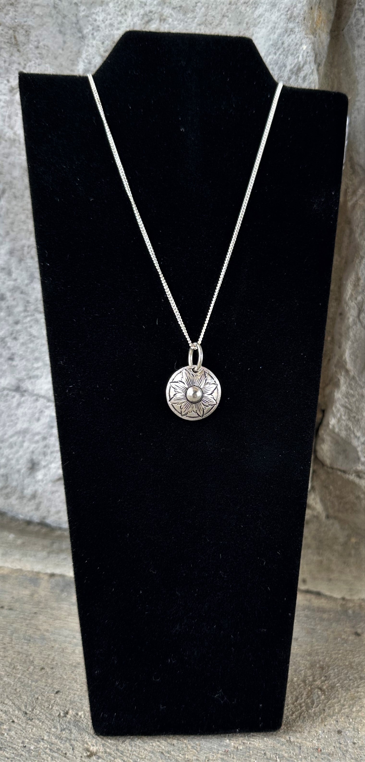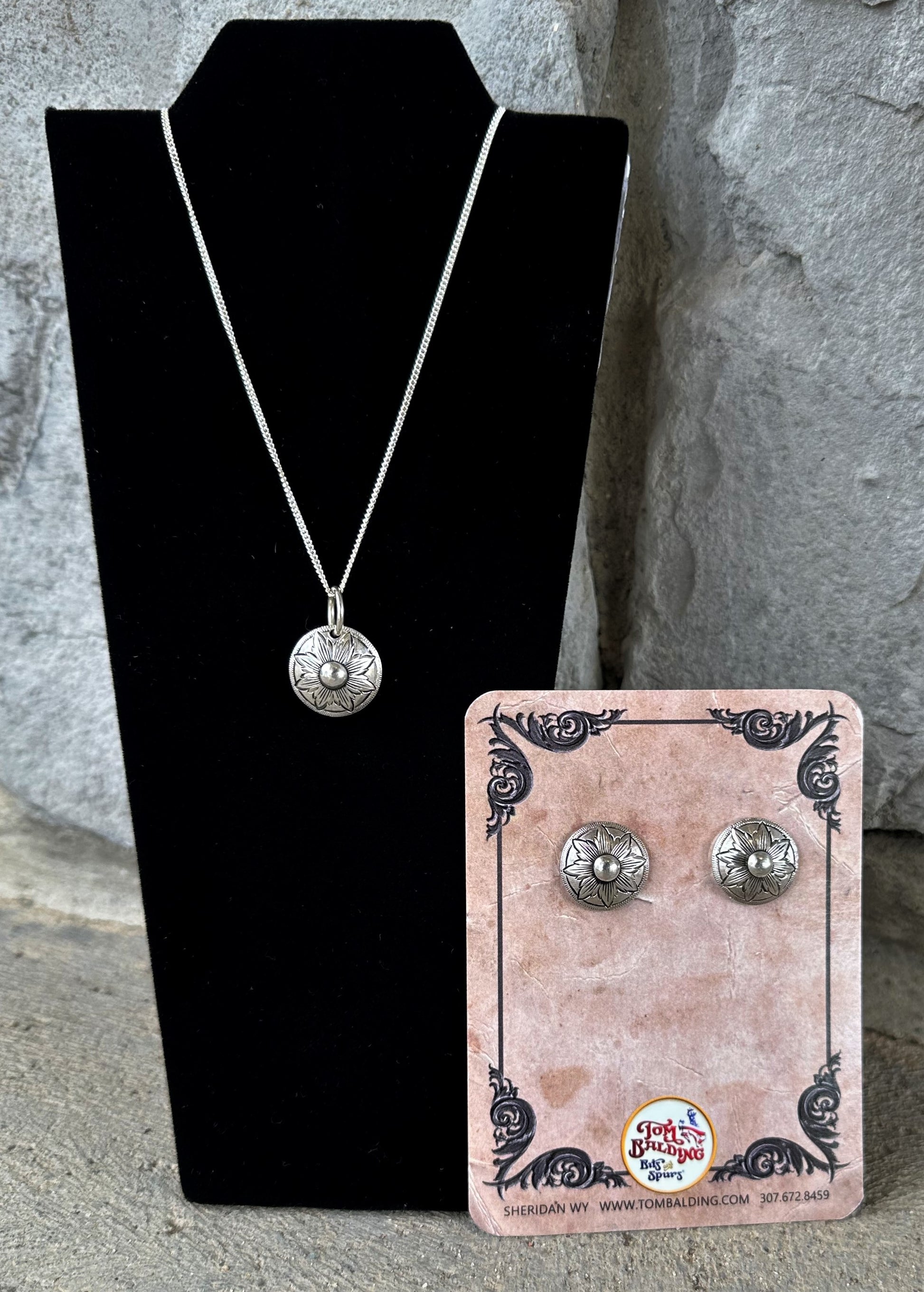 Brincos e pingentes clássicos de prata esterlina com flor Burst Concho