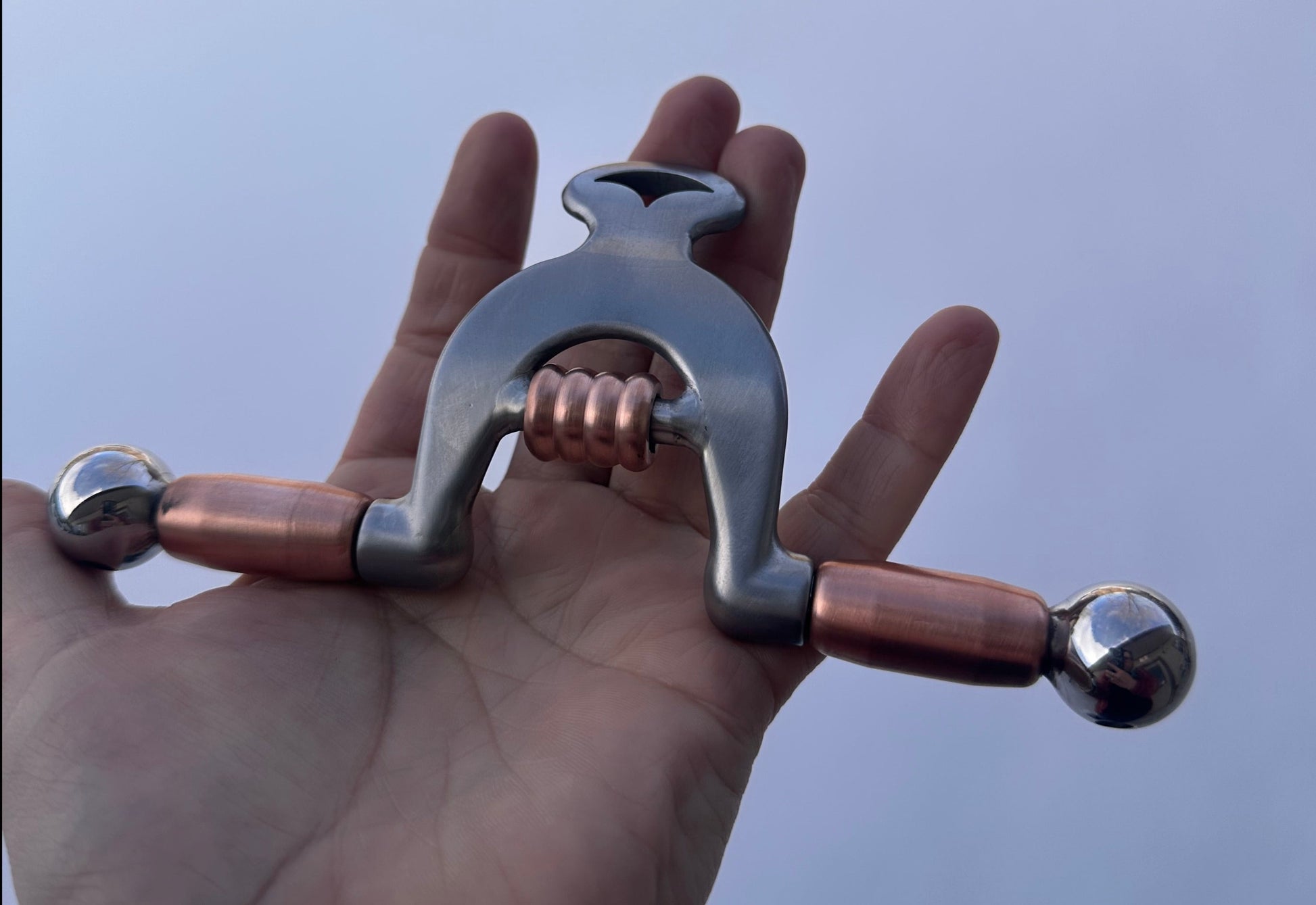 Este bocado lindamente trabalhado apresenta uma haste Switchback© castanha e inoxidável com detalhes florais e bolinhas prateadas. O bocal é o nosso popular Ace of Spades© com um rolo de cobre incorporado. Esta haste mede 8 1/4" no total.