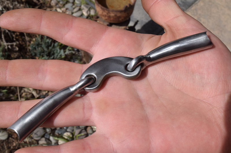 Мундштуки Tom Balding имеют ширину 5 1/8 дюйма и изготовлены из сладкого железа для увеличения слюноотделения и более расслабленной реакции и со временем ржавеют.