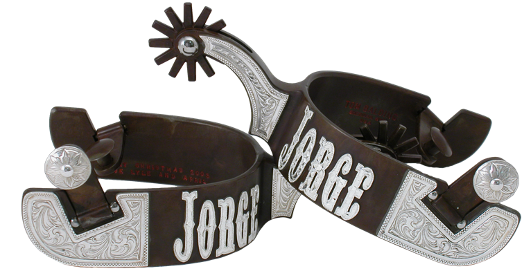 Эти красиво сделанные шпоры имеют стержень № 8 (длина 2-1/8 дюйма), шпатели E2 (12 точек и 1-1/4 дюйма) и пятку 1 1/4 дюйма. Коричневая отделка дополняет изготовленную на заказ серебряную отделку. Настройте с вашим именем. Каждая шпора изготавливается нашими талантливыми мастерами в индивидуальном порядке. Шпоры Tom Balding хорошо известны своей удобной посадкой и способностью оставаться на ботинках, если размер позволяет шпоре свободно двигаться.