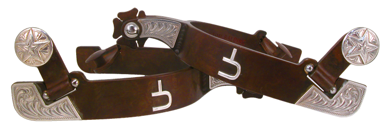 Эти красиво обработанные шпоры имеют стержень № 24 (длина 1-1/4 дюйма), шпатели G1 (клевер 7/8 дюйма) и пятку 3/4 дюйма. Коричневая отделка дополняет изготовленную на заказ серебряную отделку. Настройте свой личный бренд. Каждая шпора изготавливается нашими талантливыми мастерами в индивидуальном порядке. Шпоры Tom Balding хорошо известны своей удобной посадкой и способностью оставаться на ботинках, если размер позволяет шпоре свободно двигаться.