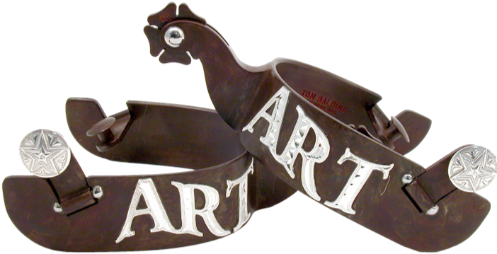 Эти красиво сделанные шпоры имеют стержень № 3 (1-3/4 дюйма в длину), шпатели G1 (1 "клевер) и пятку 1 1/4 дюйма. Коричневая отделка дополняет изготовленную на заказ серебряную отделку. Настройте с вашим именем. Каждая шпора изготавливается нашими талантливыми мастерами в индивидуальном порядке. Шпоры Tom Balding хорошо известны своей удобной посадкой и способностью оставаться на ботинках, если размер позволяет шпоре свободно двигаться.