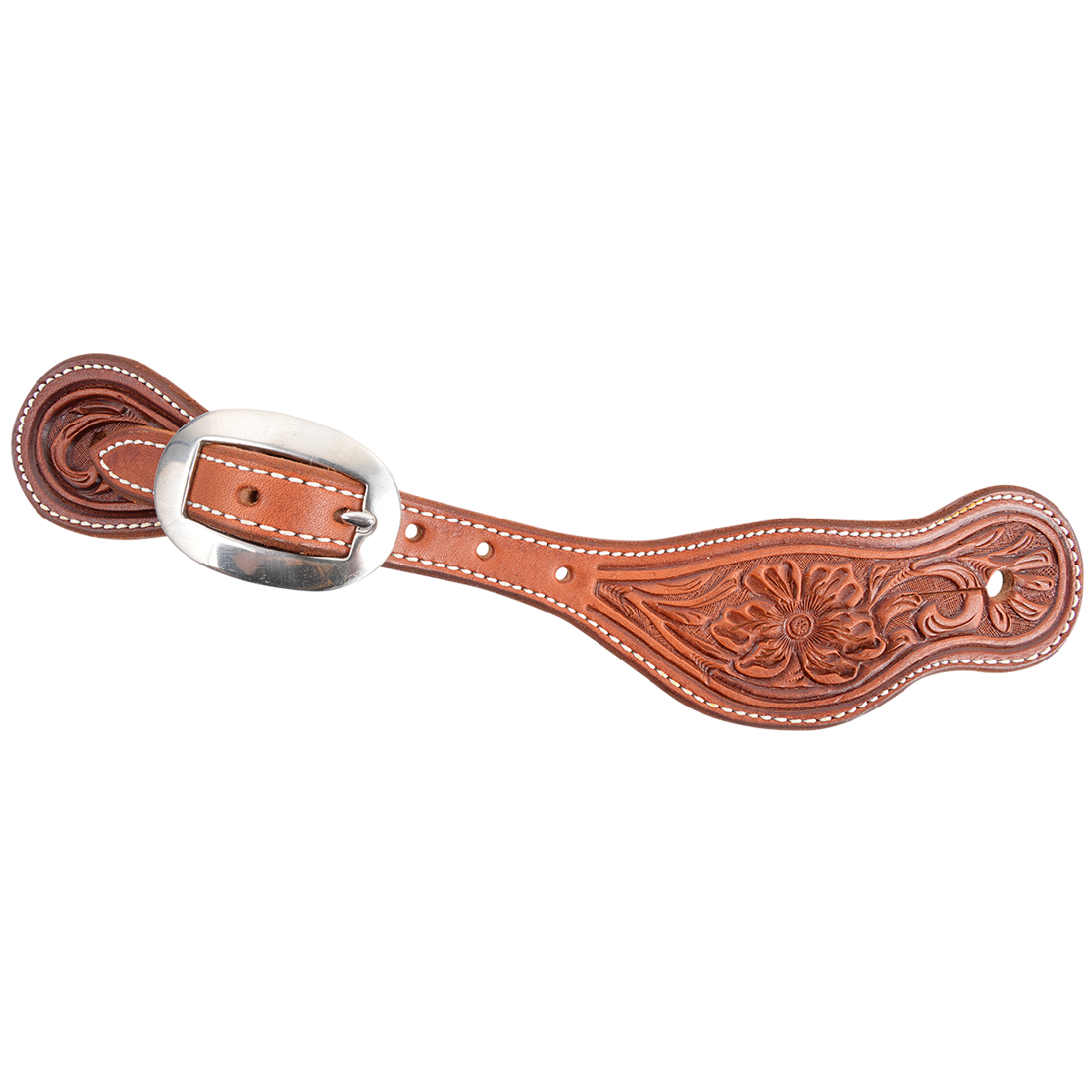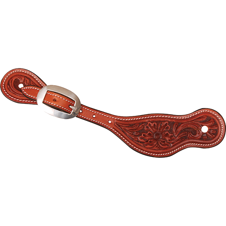 Alpine Flower işlemeli ve paslanmaz çelik tokalı düz kayış. Kestane Süpürgelik Deri.
